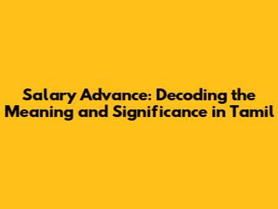 Key Takeaway: The Tamil translation of "salary advance" is "சம்பள முன்பணம்" (sampaLa munpaNam), which means "advance on salary." This translation is crucial for clear communication in Tamil-speaking contexts, helping you discuss and understand the concept with ease.