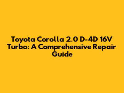 Understanding Your Toyota Corolla 2.0 D-4D 16V Turbo
